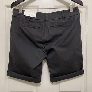 New with tags, these Ann Taylor LOFT Outlet Bermuda Roll Shorts in dark gray are a versatile warm-weather essential. Made from a soft and comfortable 97% cotton, 3% spandex blend, they offer just the right amount of stretch for easy movement without losing their tailored look. Designed in a size 6 petite, they feature classic slash front pockets, a clean chino style, and a convertible hem—wear them rolled for an approx. 9" inseam or unrolled for 11". Measurements are included in the photos.