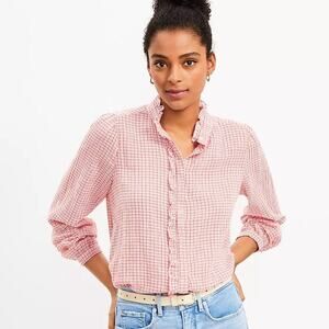 NEW Ann Taylor Loft Plaid Ruffle Long Sleeve Button Down Shirt Size M