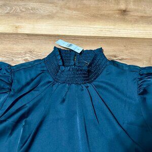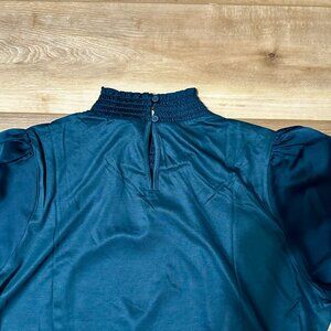 NEW Ann Taylor Mock Neck Blouse – Tile Color, Balloon Elbow Sleeves, Size LP