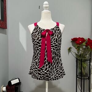 NEW Ann Taylor Silk Classic Keyhole Bow Spiral Flower Sleeveless Two Tone Top 4
