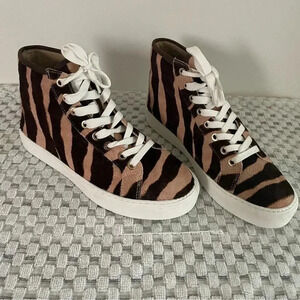 NEW! Ann Taylor Zebra Print Haircalf High Top Sneakers - 6 016