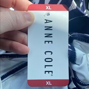 NEW Anne Cole V-Wire Tankini Swim Top XL Navy Blue White Coastal Palms Print