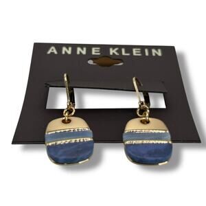 NEW Anne Klein Earrings Blue Gold Coastal Stripe Disc Dangle Drop
