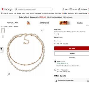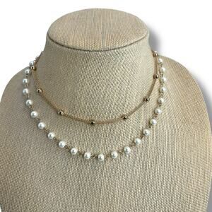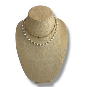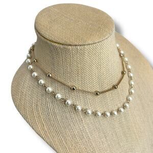 NEW Anne Klein Gold Imitation Pearl Multi Row Necklace Layering Short Minimalist
