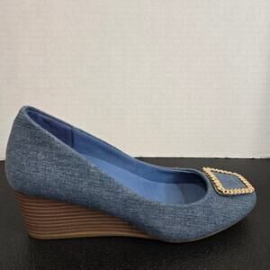 NEW Anne Klein Iflex Sadie Blue Denim Wedge Heels Size 8.5 M Dressy Casual