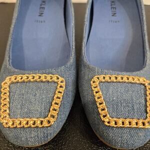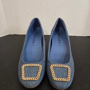 NEW Anne Klein Iflex Sadie Blue Denim Wedge Heels Size 8.5 M Dressy Casual