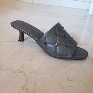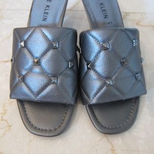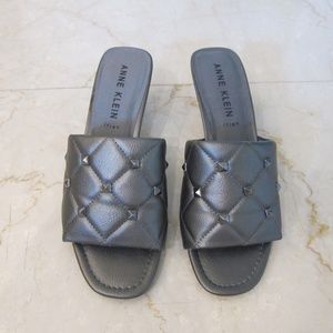 NEW! Anne Klein Kyla Kitay Grey Pewter Studded Kitten Heel Slip On Sandals - 9M