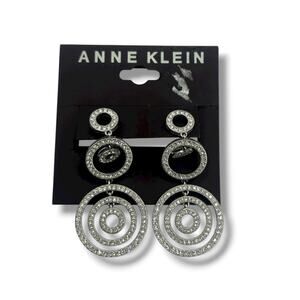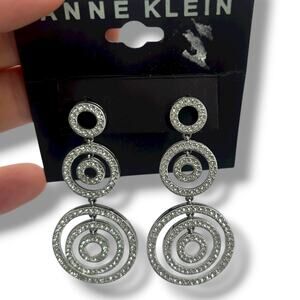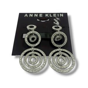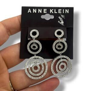 NEW Anne Klein Silver Drop Earrings Pave Round Circle Hoops Fancy Cocktail Long