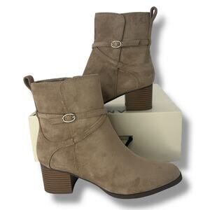 NEW Anne Klein Tan Booties Size 7.5 Beige Sand Low Ankle Boot Faux Suede NWT