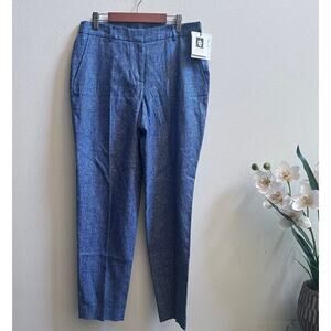 NEW Anne Klein Women's Blue Linen-Blend Straight Ankle Trouser Pants Size 2