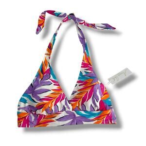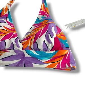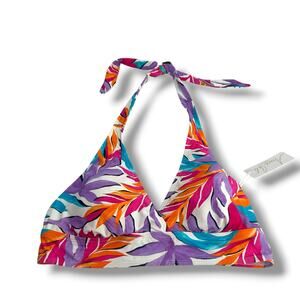 NEW Anne cole Bikini Top Medium Tropical Palm Print Halter Triangle Swim Suit