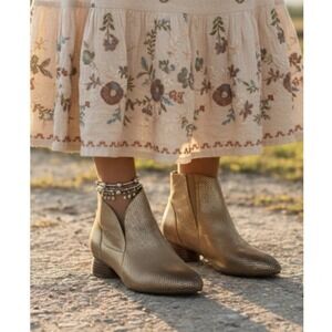NEW Antelope Bronze REN Laser Boho Ankle Boots Smokey Gold Slip-On Women Size 38