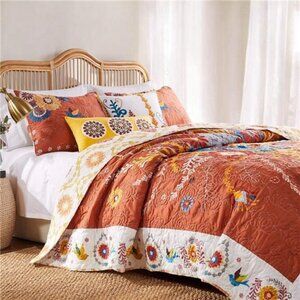NEW Anthro Queen / King Floral Boho Reversible Quilt Bedspread Blanket Sham Set