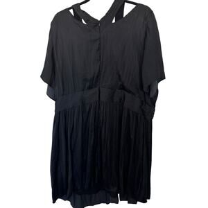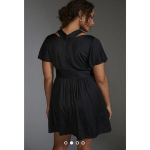 NEW Anthropolgie Plus Size Babydoll Mini Dress Short Slevve Black Satin 26W