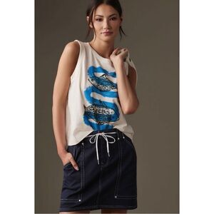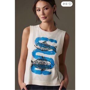 NEW Anthropologie Animal Theory Blue Snake Fish Boxy Graphic Tank Top Medium