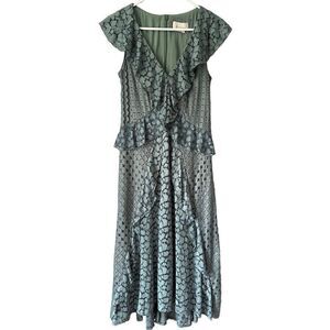 NEW Anthropologie Antoinette Ruffled Midi Dress size M Green