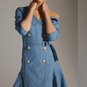 NEW Anthropologie Atsu One-Shoulder Denim Jean Utility Mini Dress