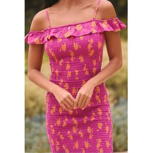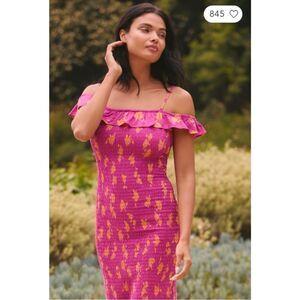 NEW Anthropologie Celandine Pink Off Shoulder Smocked Ruffle Midi Dress Small