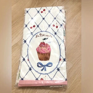 Cupcake, cherries and bow printed dish / tea / decor towel 28"L, 21"W. New in bag never opened