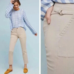 NEW Anthropologie Cropped Utility Khaki Pants Neutral Contemporary Modest Office