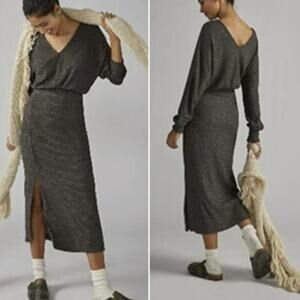 NEW Anthropologie Daily Practice Muted Black Barre Midi Knit Dress (S)