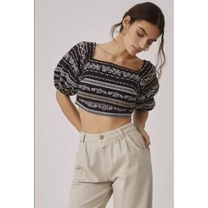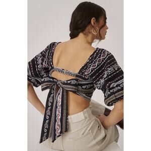 NEW Anthropologie Dolan Black and Pink Puff Sleeved Blouse