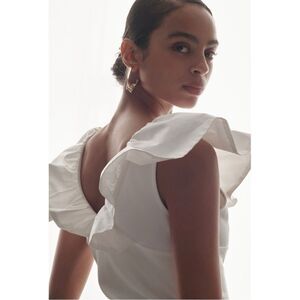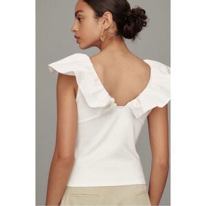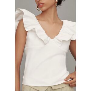 NEW Anthropologie Dolan Left Coast White Knit Ruffle V-Neck Tank Top X-Large