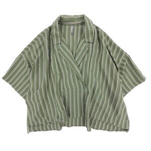 NEW Anthropologie Dylon Short-Sleeve Wide-Placket Top Striped Green Resort Boho