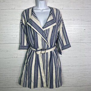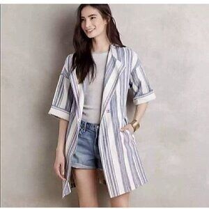 NEW Anthropologie Elevenses Blue White Striped Duster Jacket XS