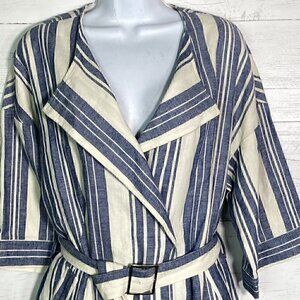 NEW Anthropologie Elevenses North Channel Blue and White Striped Duster Jacket. Linen cotton blend, women’s size XS. Armpit to armpit 19”, shoulder to hem 35”.