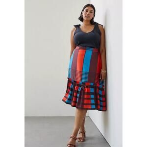 NEW Anthropologie Eva Franco Flounced Skirt Size 6 Midi Striped Western Autumn