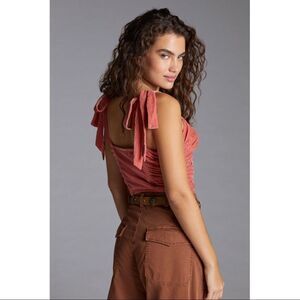 🎤 From Anthro: Adjustable tie straps and corset-inspired seams ensure this velvet top will be a standout for seasonal occasions - just add your favorite wide-legs and boots.