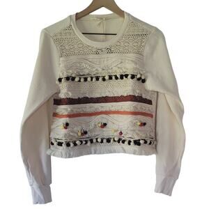 NEW Anthropologie Fringed Cream Sweater - Size: Medium
