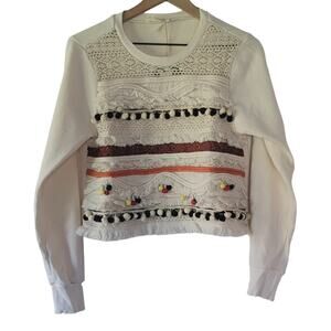NEW Anthropologie Fringed Cream Sweatshirt/Sweater - Size: Large
