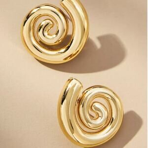 NEW Anthropologie Gold Chunky Elegant Swirl Statement Earrings