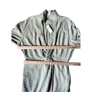 NEW Anthropologie Green V-Neck Knot Front Midi Dress size 14 linen blend