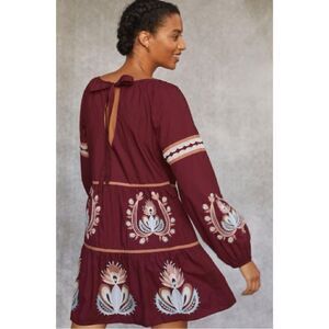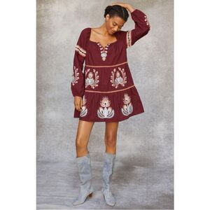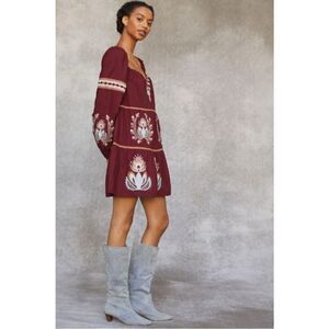 NEW Anthropologie Let Me Be Embroidered V-Neck Tunic Peasant Mini Dress Medium