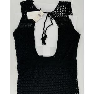 NEW Anthropologie Line & Dot Crochet Dress Black Large Lined Cut Out Back Accent
