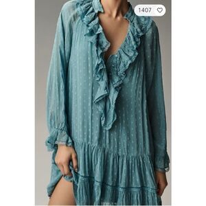 🤩 NWT By Anthropologie Long-Sleeve V-Neck Ruffled Tunic Dress