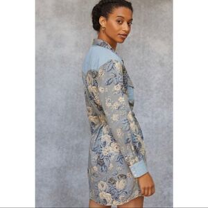 NEW Anthropologie Love The Label Floral Chambray Buttondown Mini Dress X-Small