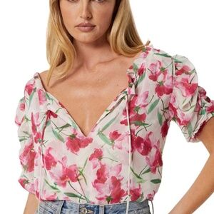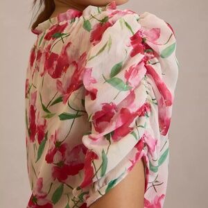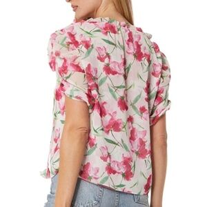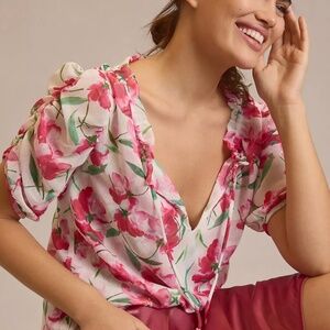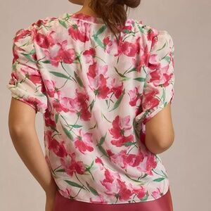 NEW Anthropologie MISA Los Angeles Sera Puff Sleeve Blouse in size XS in Spring Fuchsia. The Sera blouse is an effortless, everyday blouse cut from a floral print chiffon. This double lined top features a split neckline with adjustable petal ties and short sleeves with elastic ruching. Sera is made in the USA. Brand new with tags, tags are marked to prevent store return.