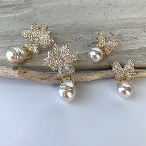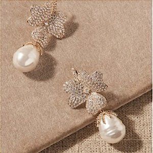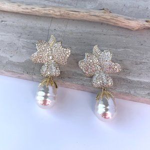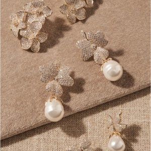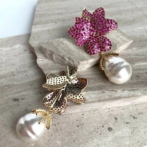 NEW ~ Anthropologie Made by Maddie Pink Travona Floral Pave Crystal & Pearl E…