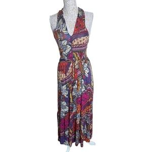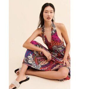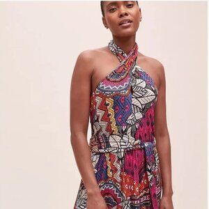 NEW Anthropologie Maeve Cynthia Halter Maxi Dress Abstract Printed Multi Color