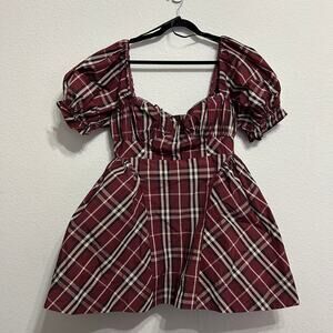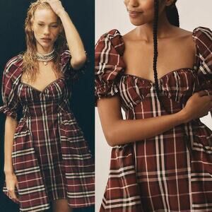 This is a brand new Anthropologie Maeve Puff Mini Dress in a fun plaid pattern, perfect for the holiday season! The dress is a size large and features a flattering silhouette with puff sleeves, making it a stylish and preppy addition to your wardrobe. Dress is new with tags.