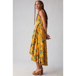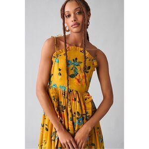 NEW Anthropologie Maeve Maize High-Low Pleated-Trim Floral Ruffle Dress 2 Petite