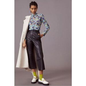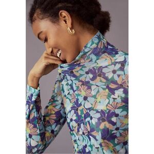 NEW Anthropologie Maeve Sheer Blue Floral Mesh Turtleneck Top Blouse Medium