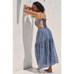 NEW Anthropologie Mahila Reva Blue Metallic Cut Out Halter Maxi Dress X-Large