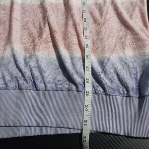 Keywords: striped tunic, pastel dress, swim cover-up, velour dress, loose fit tunic, ribbed hem dress, French terry tunic, crew neck tunic, short sleeve dress, Maronie tunic, pastel pink purple, soft striped tunic, vintage-inspired dress, 80's style, colorful cover-up, oversized tunic, roomy top, towel material cover-up, Anthropologie dress