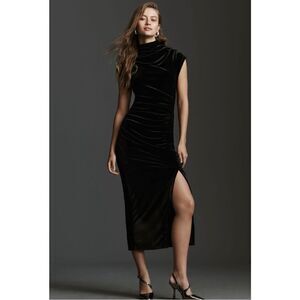 NEW Anthropologie Maya Black Ruched Cowl-Neck Velvet Side-Slit Lined Maxi Dress