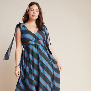 Eye-catching stripes make a vibrant statement on this midi dress, offering seasonal style in its brightest, most feminine form.
